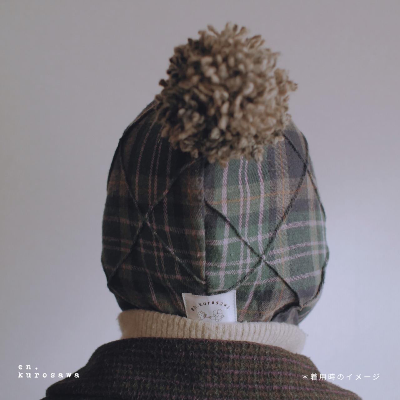 型紙から制作している、en.kurosawaオリジナルの『すっぽり可愛い冬のボンネット』♪