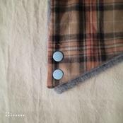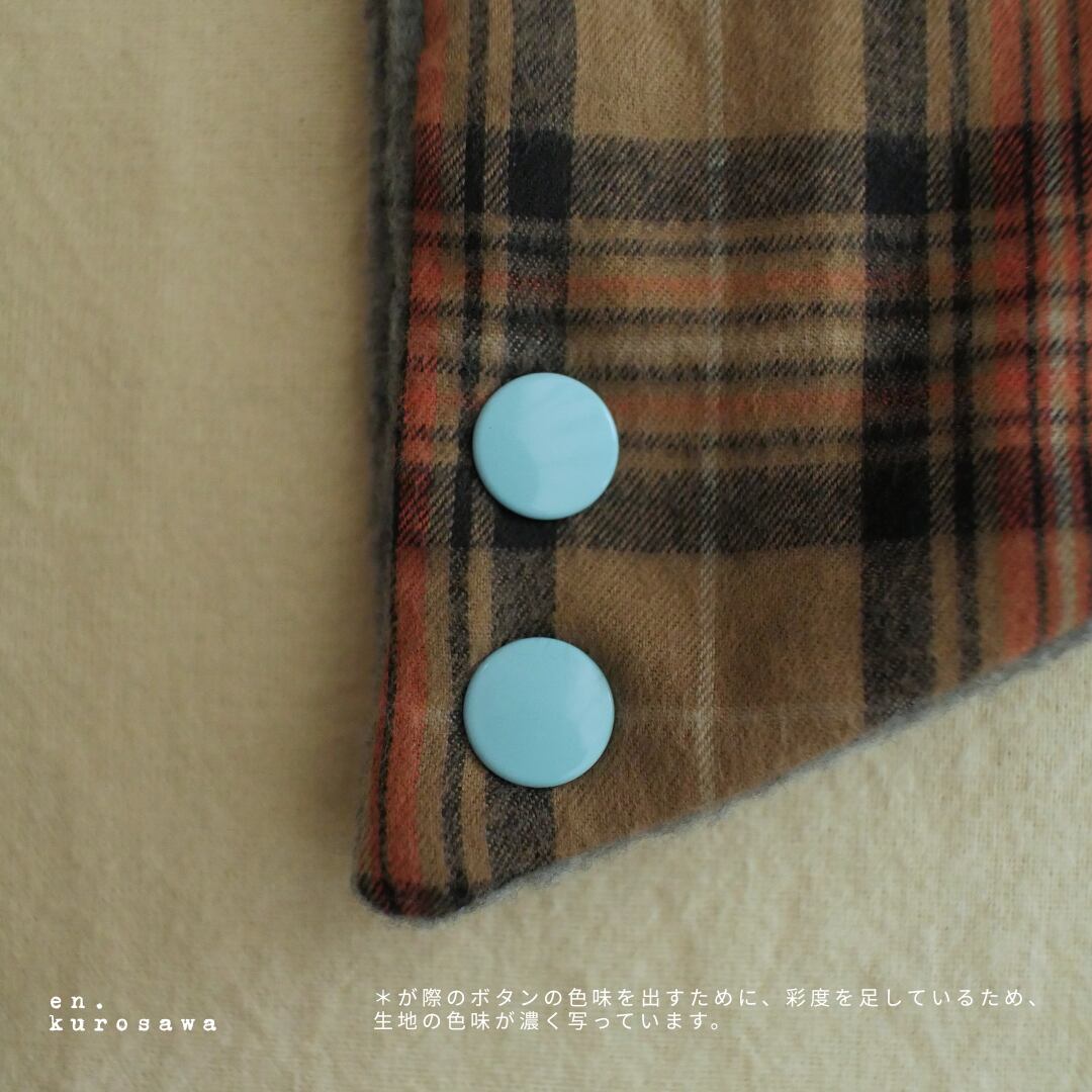 一目惚れをしたかわいい水色のボタンさんは、落ち着いた色合いの冬の生地たちに楽しさを吹き込んでくれています。一つでとめたり、ぴったり二つとめたり、お好みに合わせて使ってください。