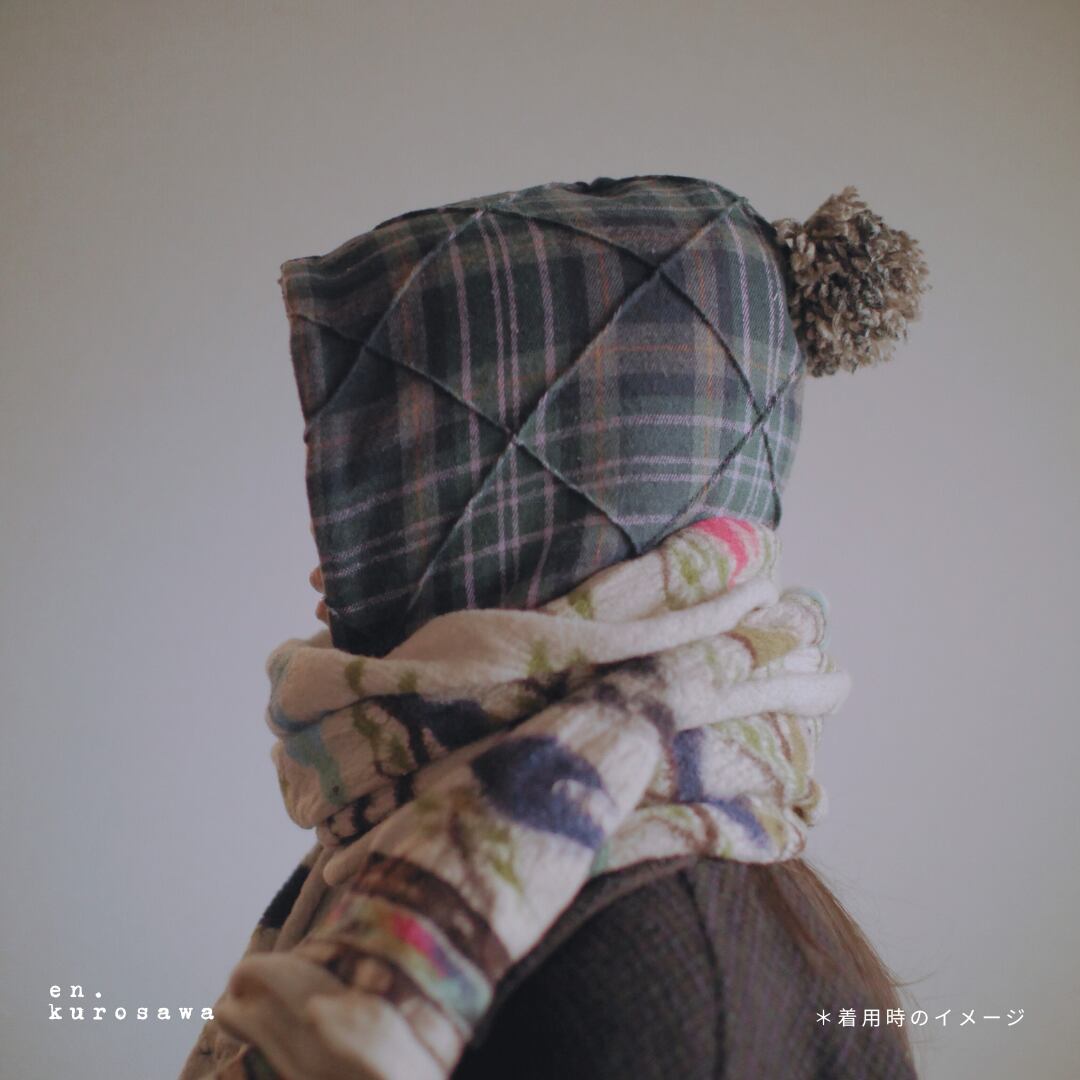 型紙から制作している、en.kurosawaオリジナルの『すっぽり可愛い冬のボンネット』♪