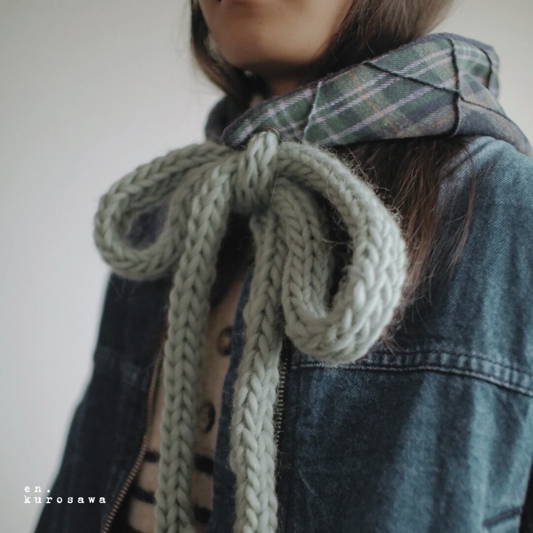 リボンは取り外しもできるデザインなので、お気に入りのリボンや細いマフラーに取り替えることで、いろんなパターンを楽しめます