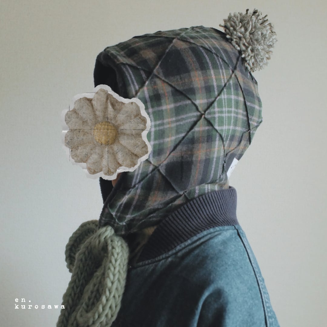 型紙を何度も作り直し、一から制作したen.kurosawaオリジナルの『すっぽり可愛い冬のボンネット』のリボンバージョンです^^