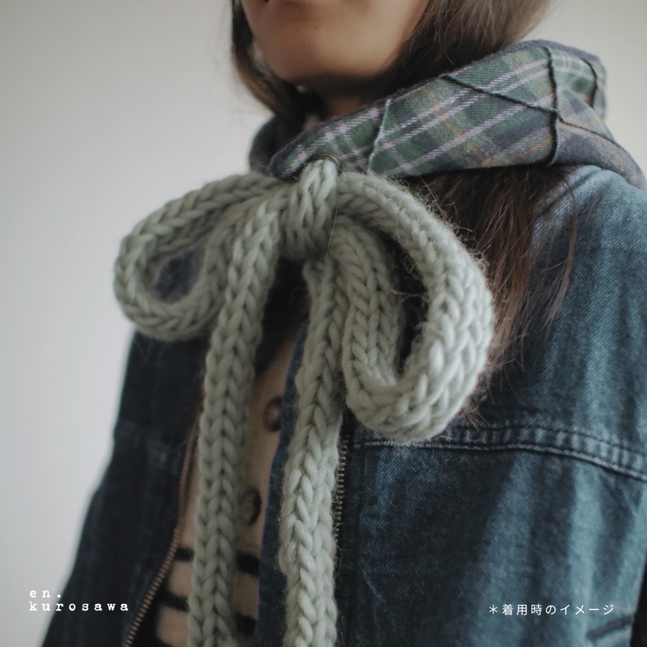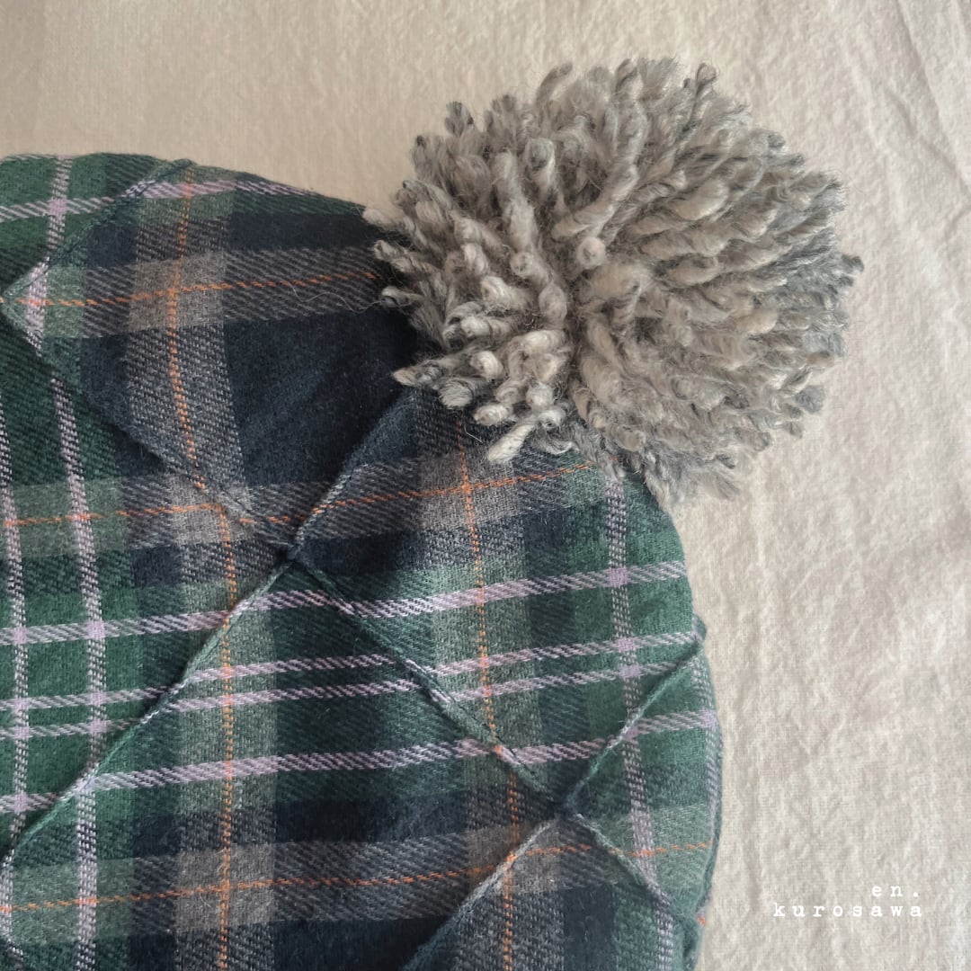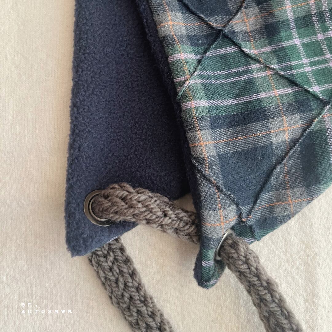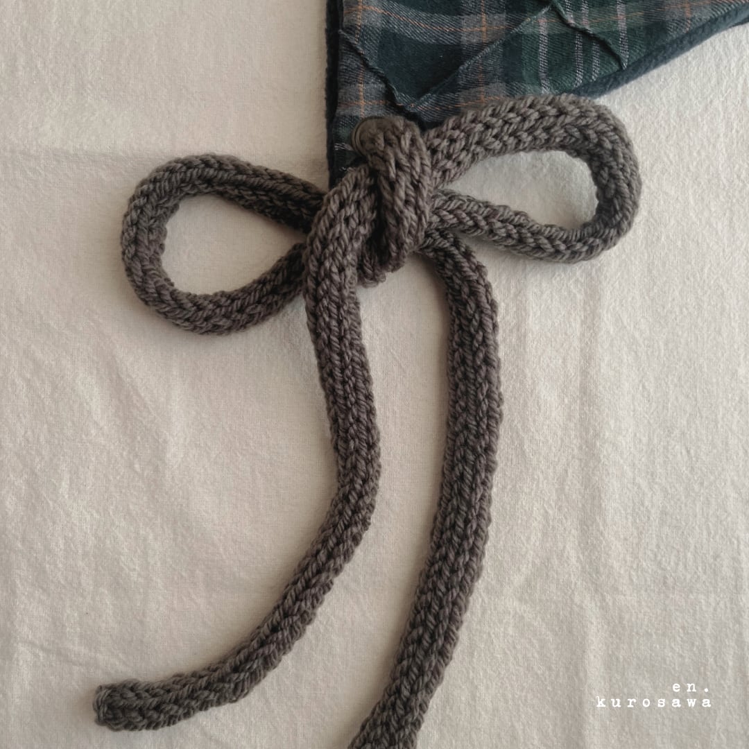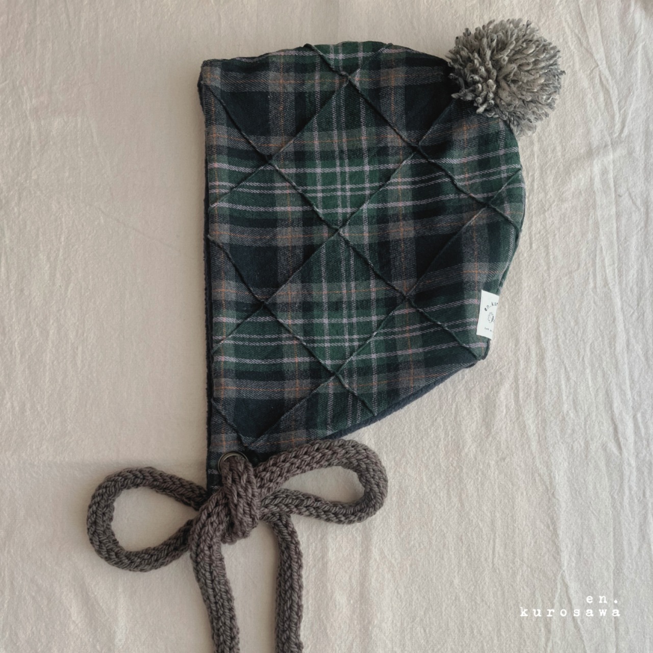 型紙から制作している、en.kurosawaオリジナルの『すっぽり可愛い冬のボンネット』のリボンバージョンです♪