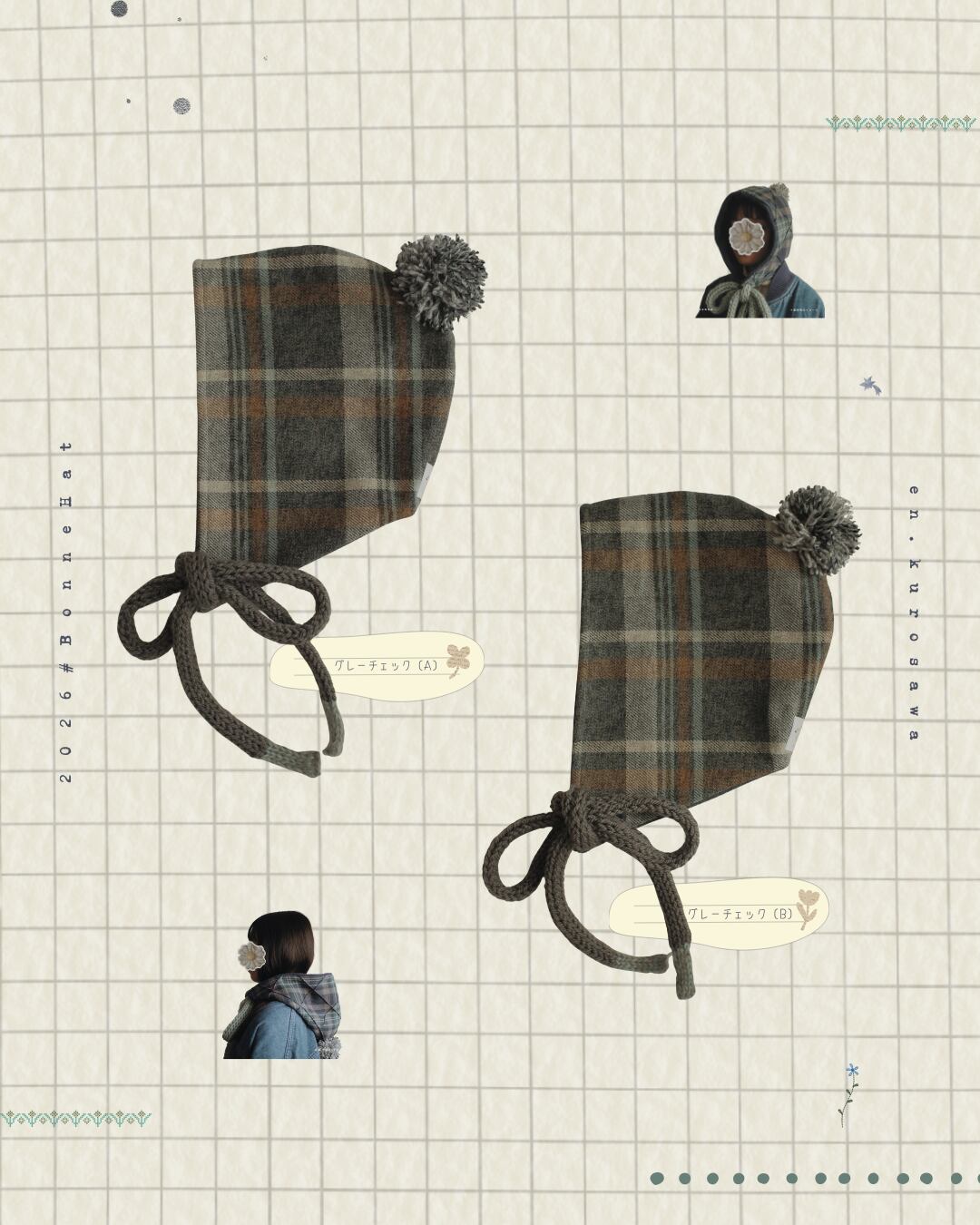 en.kurosawaオリジナルの『すっぽり可愛い冬のボンネット帽』のリボンシリーズです♪